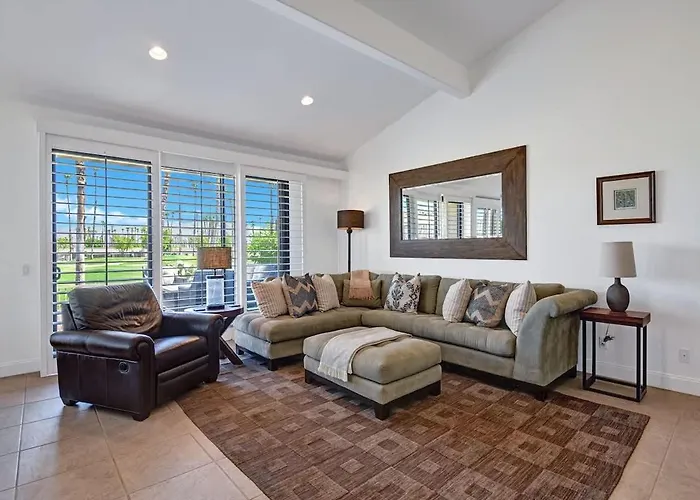 Palm Springs airport can be reached within 24 minutes drive, and natural attractions like the 21-acre City of Palm Desert Hovley Soccer Park are 3.5 km away. The Desert Holocaust Memorial can be found around 15 minutes by car from Pet-Friendly Palm Valley Condoviewsbbqpoolspa villa, and the Coachella Valley is nearly a 20-minute ride away. Positioned within 7 km of the St. Francis of Assisi Catholic Church, the Palm Desert holiday home is popular among both worshippers and tourists.